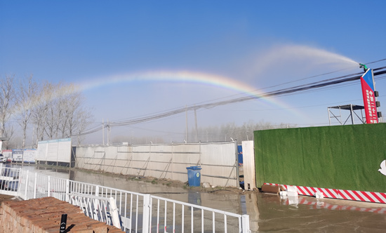 “該裝置可覆蓋整個存土場,噴灑射程在80-120米,保證施工過程中不起塵?,F(xiàn)在我們是24小時運轉(zhuǎn),濕化作業(yè)?!辟》逭f,高壓抑塵消防霧炮系統(tǒng)運行分自動控制和手動控制兩種運行方式,在手機APP上可以隨意設(shè)定噴淋時長、水霧大小、噴淋方向等。另外,為保證施工現(xiàn)場的干凈整潔,項目部還在施工便道上設(shè)置了30米自動洗車棚,讓工地運送物資的車輛始終光亮嶄新。