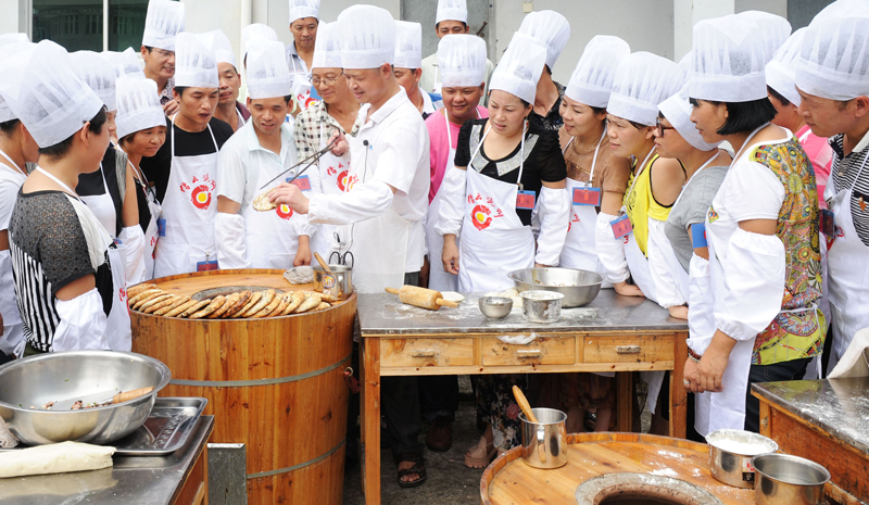 縉云燒餅師傅現(xiàn)場教學(xué)。麗水市委宣傳部供圖