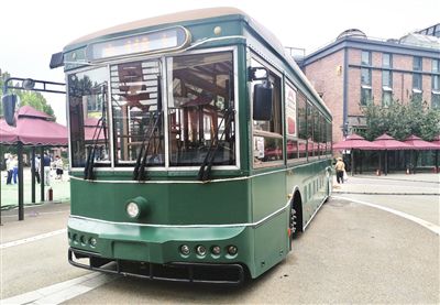 “鐺鐺車”長約12米,車身為啞光墨綠色,深沉典雅。走進車廂,棕紅色地板、仿木質(zhì)結(jié)構(gòu)座椅、同色系車窗和書架,每一處都彰顯經(jīng)典。
