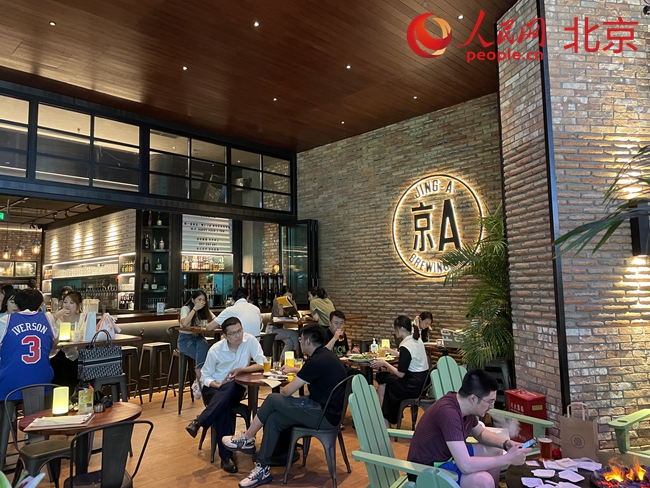 除了火鍋店,一家名為“京A Taproom”的美式精釀啤酒餐吧也熱鬧十足。美式工業(yè)風(fēng)的裝潢極具格調(diào),炸雞配啤酒的組合也頗有人氣。“這里的氛圍我很喜歡,小吃和啤酒也很對(duì)我的胃口,來(lái)這里能夠忘掉那些煩惱和壓力。”李女士在工作了一天之后,邀約了朋友一起來(lái)這家餐吧放松心情。