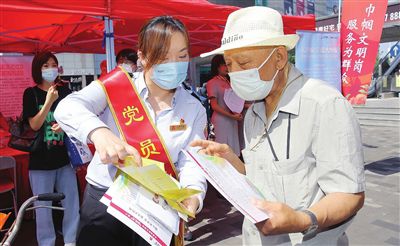 7月13日上午,天津市和平區(qū)濱江道樂賓百貨門前,市第十二次黨代會精神宣講展位彩旗招展,群眾絡(luò)繹不絕。來自衛(wèi)健、科技、政法、交通、公共服務(wù)、社會組織等方面50多個各級各類的為民服務(wù)窗口型“巾幗文明崗”“巾幗建功先進集體”志愿者齊聚,以學(xué)習(xí)宣傳貫徹市第十二次黨代會精神暨“迎盛會、鑄忠誠、強擔當、創(chuàng)業(yè)績”巾幗文明崗為群眾服務(wù)活動為主題,開展多項便民服務(wù)。