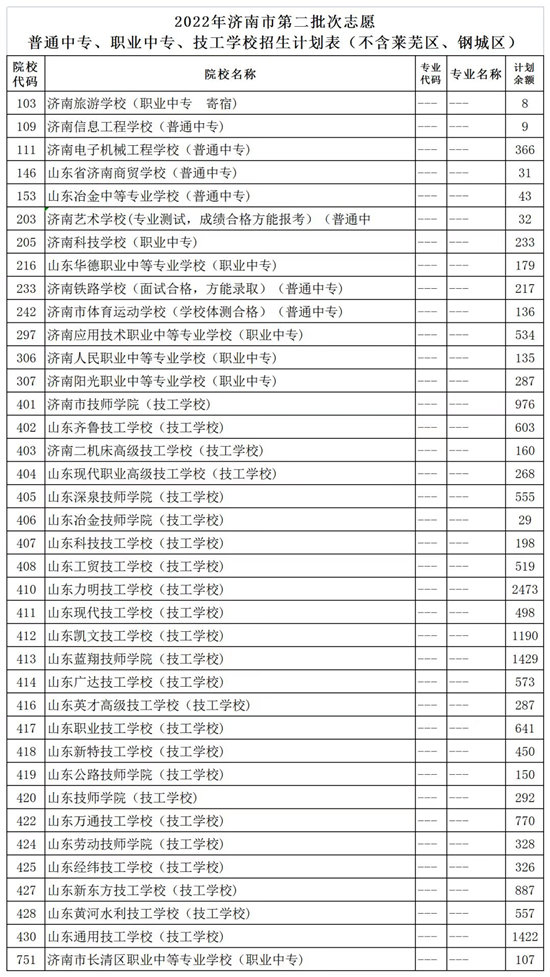 濟南市高中階段學校招錄第二批次志愿填報說明、各校剩余招生計劃(不含萊蕪區(qū)、鋼城區(qū))