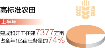 種子耕地農(nóng)機(jī)基礎(chǔ)進(jìn)一步夯實(shí),農(nóng)業(yè)綜合生產(chǎn)能力不斷提升。種業(yè)振興行動(dòng)扎實(shí)推進(jìn)。資源普查任務(wù)進(jìn)度過(guò)半,已收集農(nóng)作物種質(zhì)資源11萬(wàn)份、畜禽遺傳材料6萬(wàn)份、水產(chǎn)遺傳材料5萬(wàn)份。開(kāi)展農(nóng)業(yè)關(guān)鍵核心技術(shù)攻關(guān),首次審定一批綠色、專用和耐鹽堿小麥品種。高標(biāo)準(zhǔn)農(nóng)田建設(shè)加快推進(jìn)。上半年建成和開(kāi)工在建高標(biāo)準(zhǔn)農(nóng)田7377萬(wàn)畝,占全年1億畝任務(wù)量的74%。農(nóng)機(jī)裝備條件持續(xù)改善。推進(jìn)機(jī)收減損,小麥機(jī)收損失率控制在2%以內(nèi)。