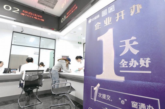 辦理時間從2017年的24天壓減為1天,企業(yè)開辦在全國率先進入“1”時代,超95%的開辦登記業(yè)務通過“e窗通”平臺“全程網(wǎng)辦”