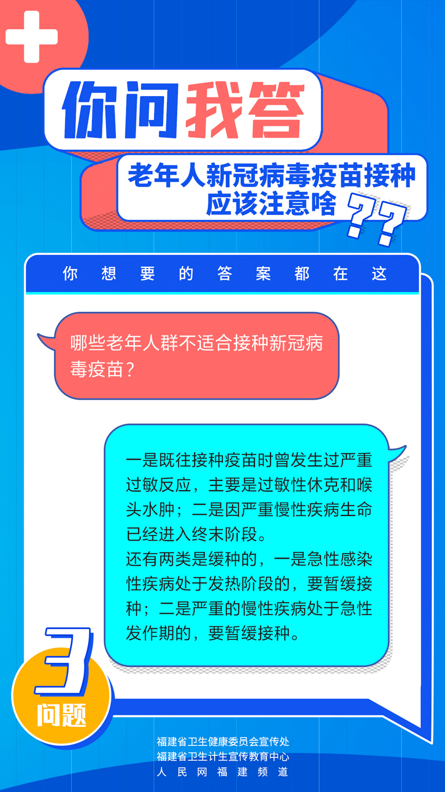 老年人接種疫苗是否安全?會有更強(qiáng)烈的不良反應(yīng)嗎?哪些老年人群不適合接種新冠病毒疫苗?你問我答,快問快答!老年人新冠病毒疫苗接種究竟應(yīng)該注意啥?