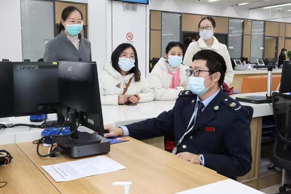 贛榆區(qū)政務(wù)服務(wù)中心,工作人員正在辦理審批。贛榆區(qū)委宣傳部供圖