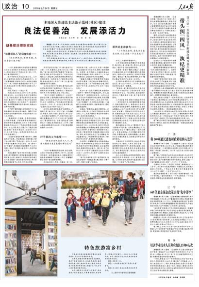 編者按:今年中央一號文件提出,加強鄉(xiāng)村法治教育和法律服務,深入開展“民主法治示范村(社區(qū))”創(chuàng)建。最高人民法院工作報告提出,要“積極促進城鄉(xiāng)基層治理和平安法治鄉(xiāng)村建設”“加強法治宣傳教育”“引導全民增強法治觀念”。