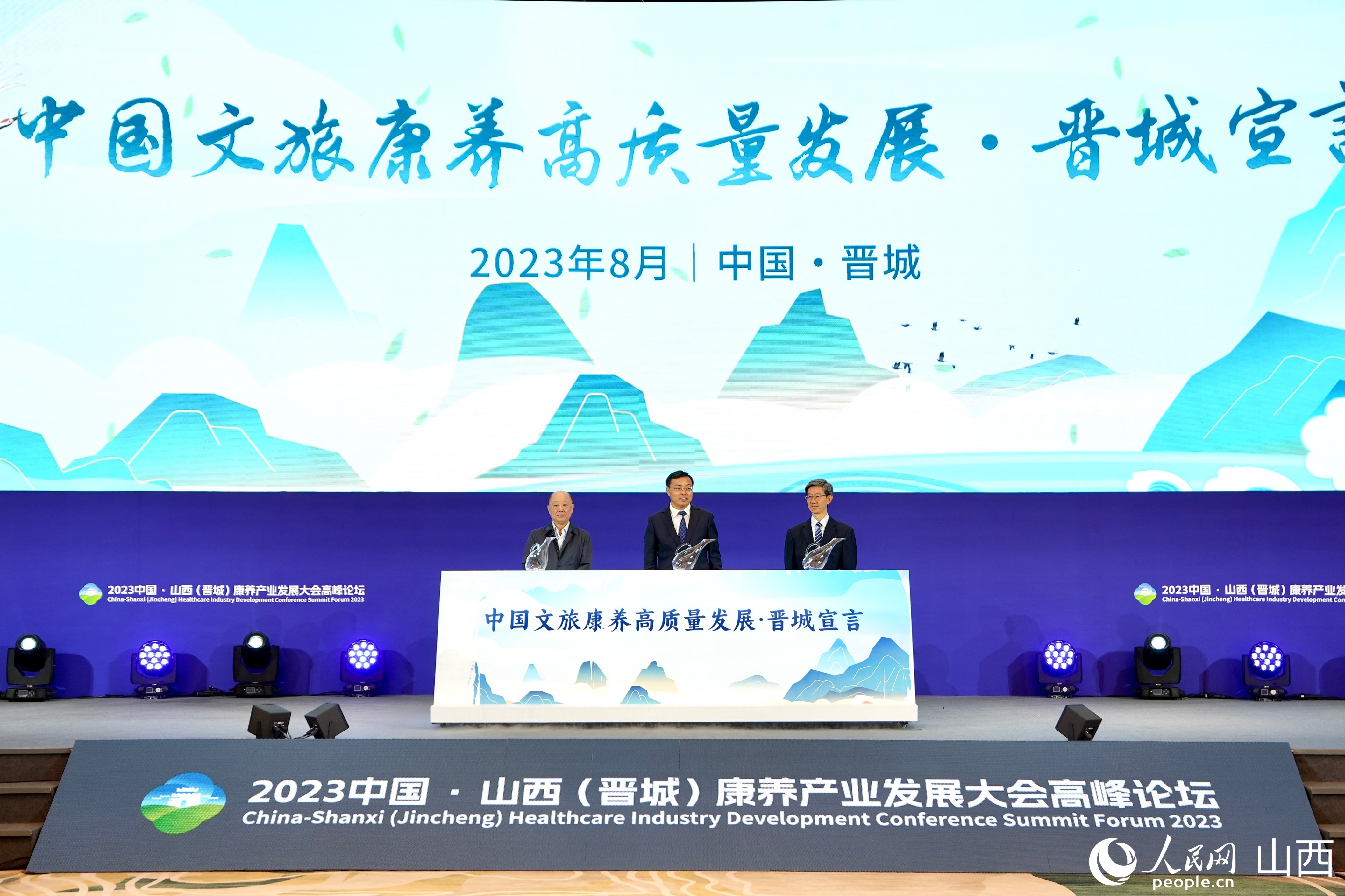 《中國文旅康養(yǎng)高質量發(fā)展晉城宣言》在高峰論壇期間發(fā)布。人民網 盧鵬宇攝
