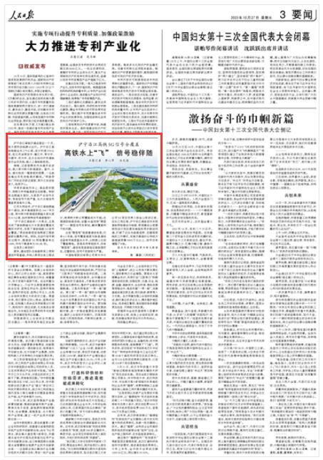 人民日報|滬寧沿江高鐵5G信號全覆蓋 高鐵水上“飛” 信號穩(wěn)伴隨