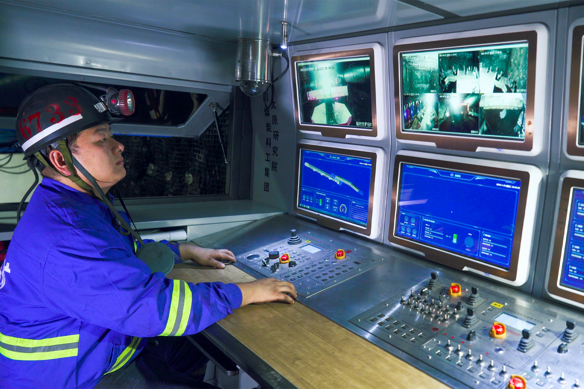 煤礦工人操控“煤海蛟龍”進行巷道掘進。(黃陵礦業(yè)二號煤礦供圖)