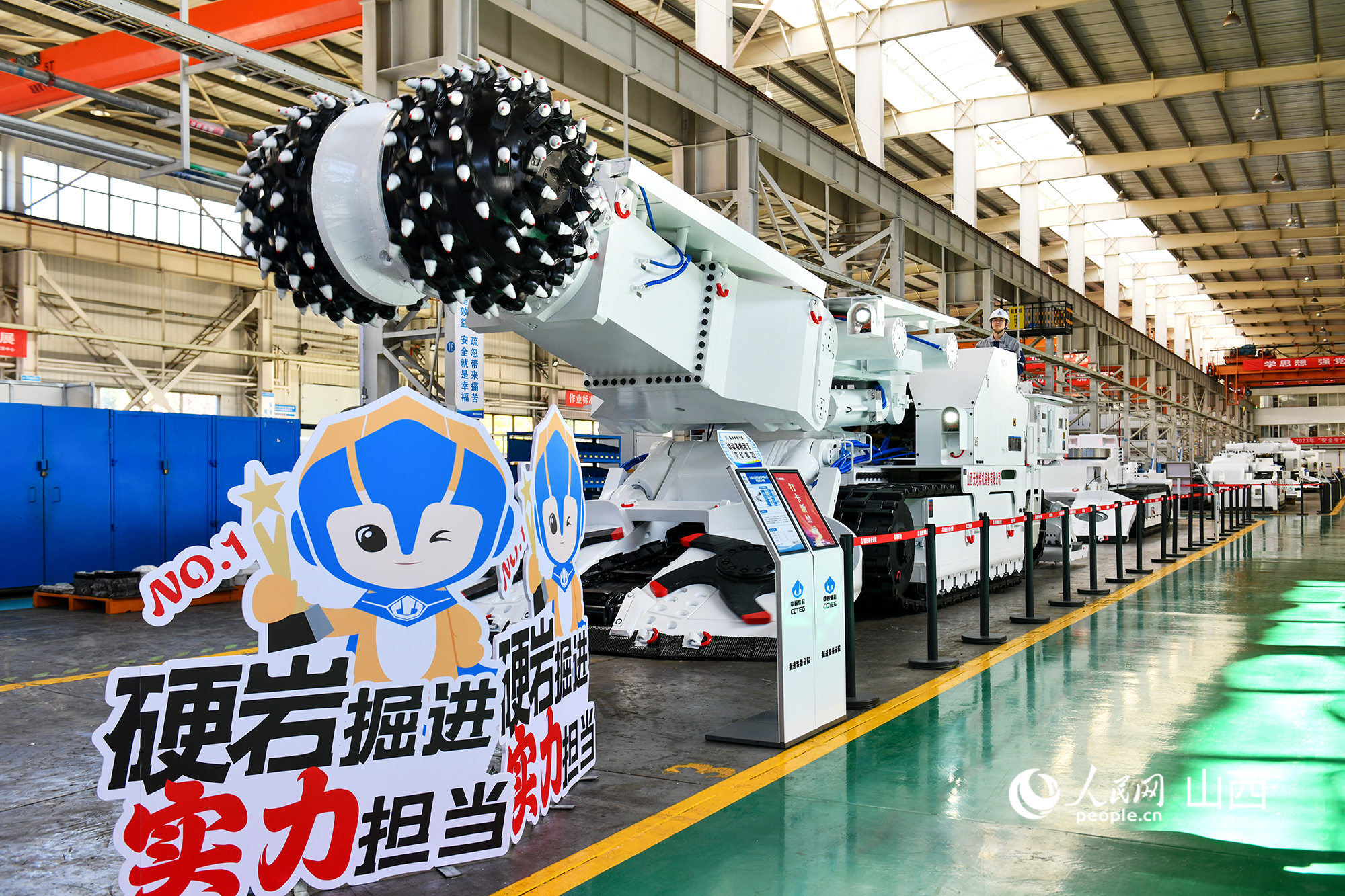 太原研究院彩虹基地生產(chǎn)車間陳列的巷道掘進裝備。人民網(wǎng)記者 焦搏文攝