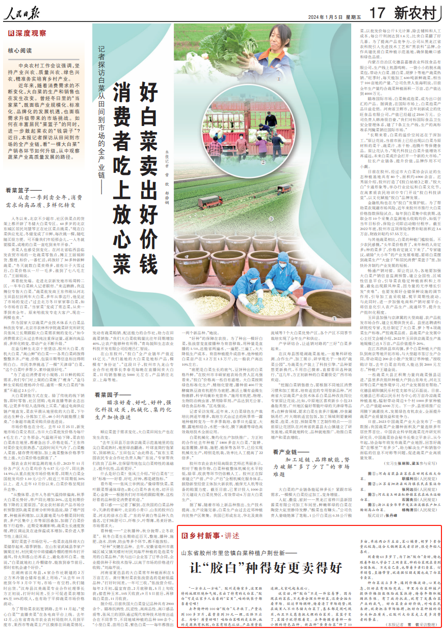 人民日報刊發(fā)“膠白”種植戶感言:讓大白菜種得好更賣得好