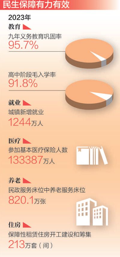 數(shù)據(jù)顯示,2023年,全國居民人均可支配收入實(shí)際增長(zhǎng)6.1%,快于同期GDP增速;全國城鎮(zhèn)新增就業(yè)1244萬人,就業(yè)保持總體穩(wěn)定;疊加降價(jià)和醫(yī)保報(bào)銷,2023年協(xié)議期內(nèi)談判藥為患者減負(fù)超2000億元……一張張民生清單,給百姓生活帶來了看得見、摸得著的可喜變化,不斷增強(qiáng)人民群眾的獲得感、幸福感、安全感。