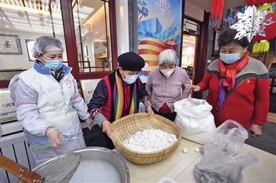 為解決市民扎堆排隊(duì),便宜坊集團(tuán)今年鋪設(shè)了約100個(gè)錦芳元宵銷售網(wǎng)點(diǎn),并首次進(jìn)駐物美超市。京味兒十足的護(hù)國(guó)寺小吃總店繼續(xù)堅(jiān)持“現(xiàn)搖現(xiàn)售”,不但推出了巧克力、黑芝麻等傳統(tǒng)口味元宵,還上新了流心榴蓮餡,增加電話預(yù)訂、線上購(gòu)買業(yè)務(wù)。老字號(hào)又一順專門用火龍果調(diào)色,制作出巧克力餡、玫瑰紅的限量版元宵。峨嵋酒家推出了用蔬菜汁、水果汁調(diào)出的“五彩”湯圓。華天集團(tuán)微信公眾號(hào)推出“猜燈謎”互動(dòng)小游戲,猜出謎底可獲得不同面值會(huì)員商城優(yōu)惠券。