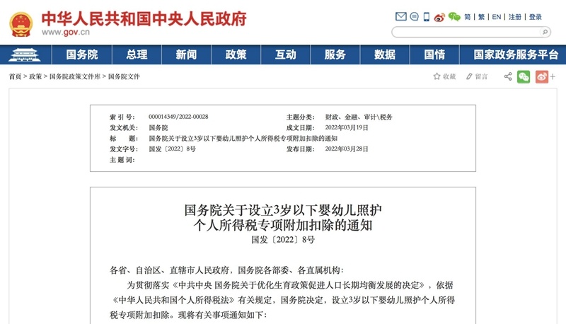 央廣網(wǎng)北京3月28日消息(記者劉柏煊)又有一項(xiàng)生育政策配套措施落地!今天(28日)下午,國(guó)務(wù)院印發(fā)通知,決定設(shè)立3歲以下嬰幼兒照護(hù)個(gè)人所得稅專項(xiàng)附加扣除,按照每個(gè)嬰幼兒每月1000元的標(biāo)準(zhǔn)定額扣除。新政回溯至今年1月1日起實(shí)施。