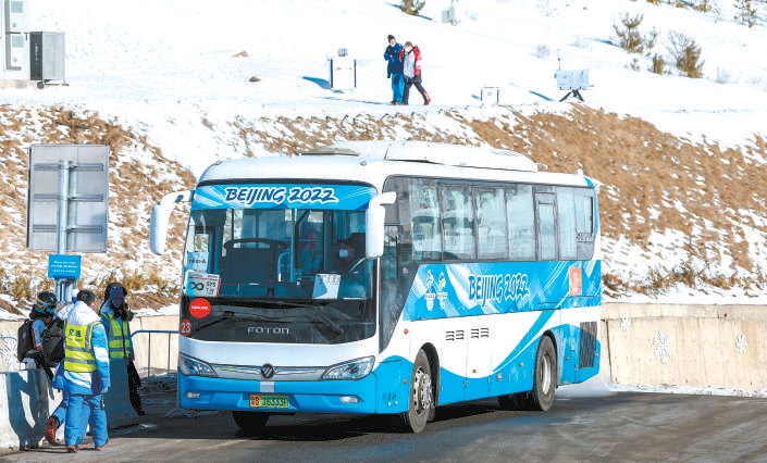 服務(wù)于北京冬奧會(huì)張家口賽區(qū)的福田汽車氫燃料電池客車。本報(bào)記者 潘之望攝