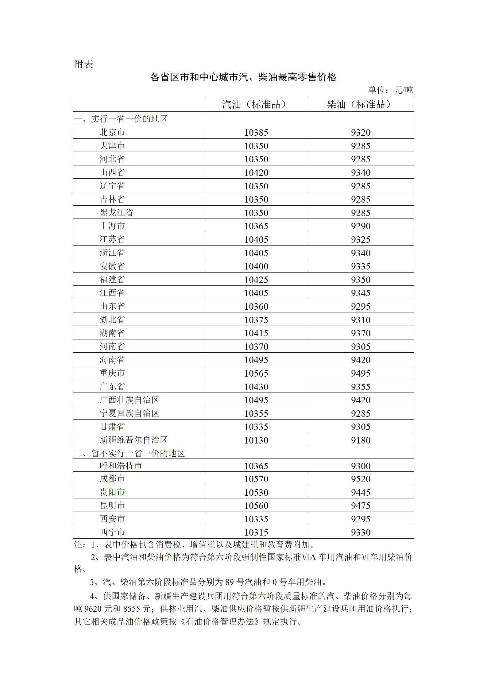 各省區(qū)市和中心城市汽、柴油最高零售價(jià)格(圖片來源:國家發(fā)展改革委官網(wǎng))