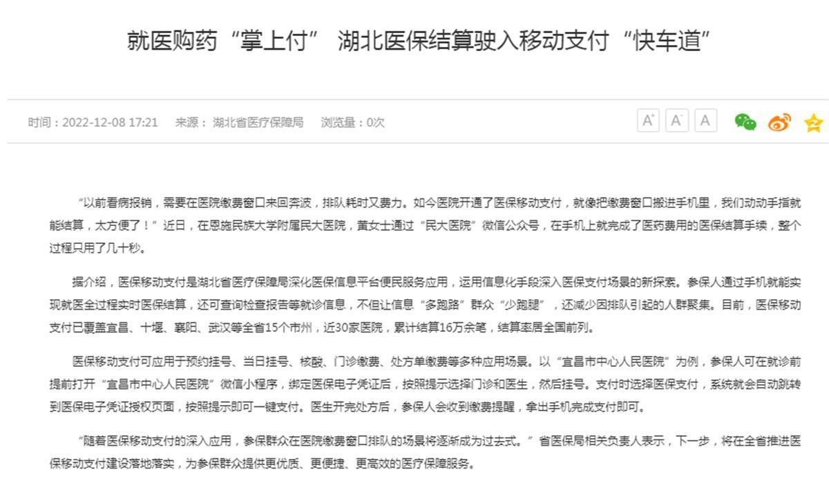 湖北醫(yī)保結(jié)算駛?cè)胍苿?dòng)支付“快車(chē)道”