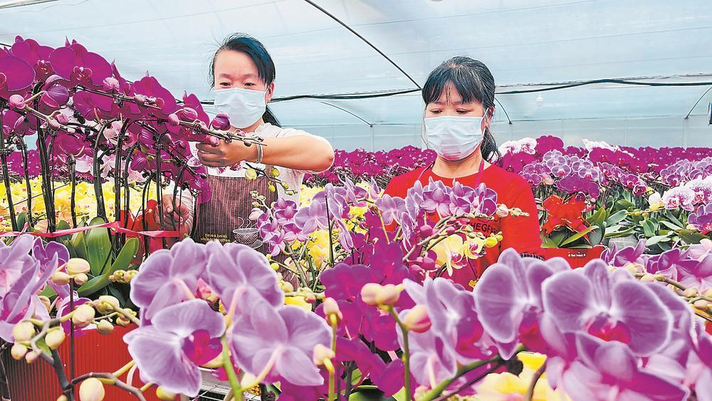 3日,龍巖市永定區(qū)撫市鎮(zhèn)五湖村福仕蝴蝶蘭種植基地,5萬多株蝴蝶蘭迎來了盛放期。基地負責人張清香告訴記者,今年的行情非常好,每株蝴蝶蘭最低賣到35元錢,大部分銷售至廣東、閩南一帶。目前,村里還有好幾名勞動力在基地就業(yè)。(記者 張杰 通訊員 熊川 盧傳順)
