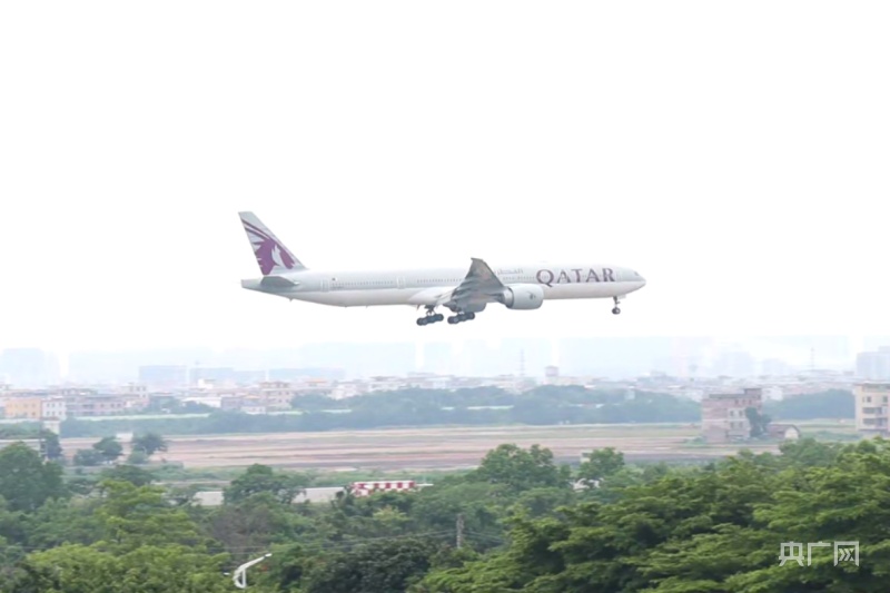 一國際航班降落廣州白云國際機(jī)場(chǎng)(央廣網(wǎng)記者 黃璐璐 攝)