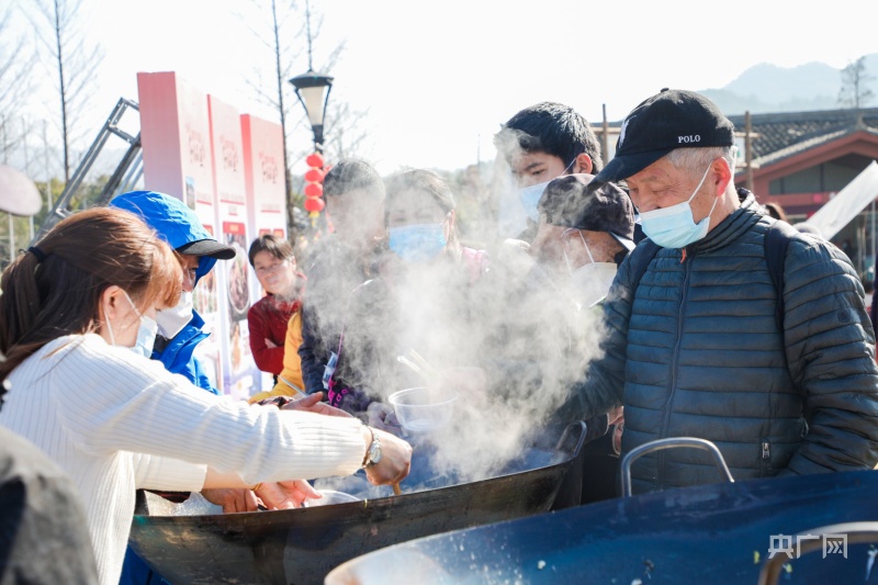 市民現(xiàn)場(chǎng)品嘗熱氣騰騰的大鍋燉魚(央廣網(wǎng)發(fā) 活動(dòng)主辦方供圖)