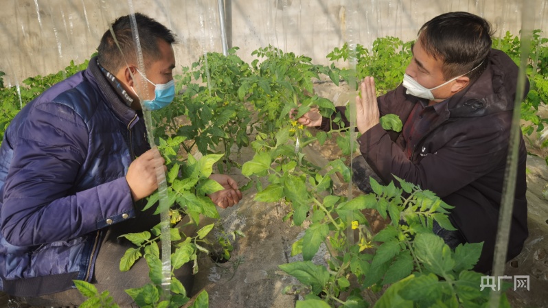 技術人員指導農戶種植蔬菜(央廣網發(fā) 高月 攝)