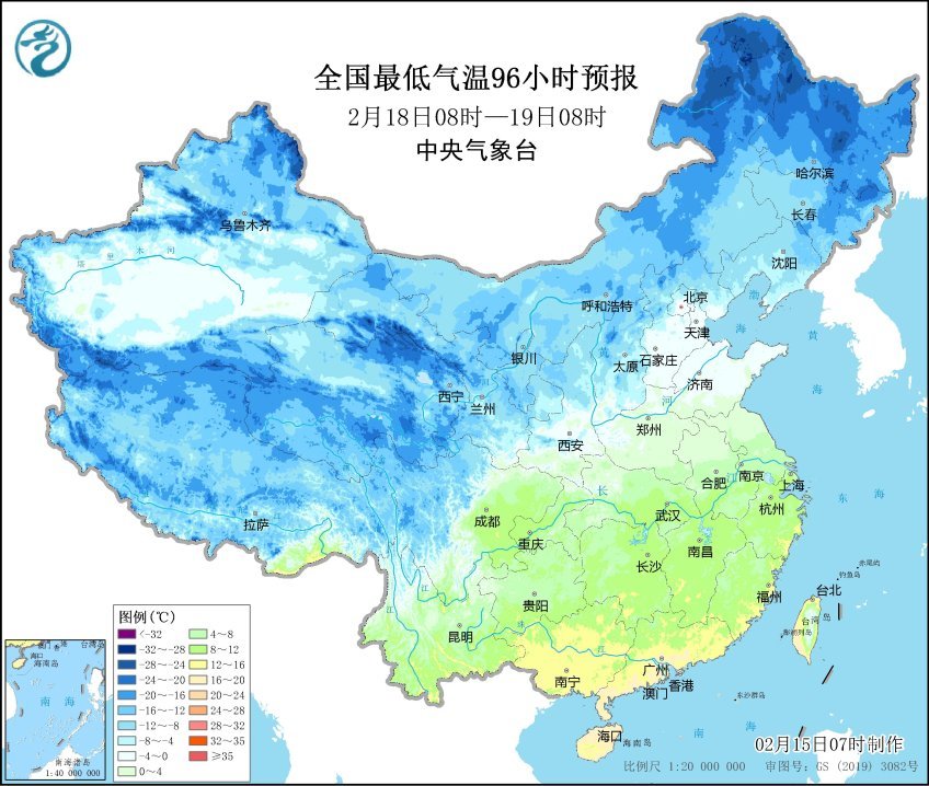 全國(guó)最低氣溫96小時(shí)預(yù)報(bào)圖(圖片來源:中央氣象臺(tái))