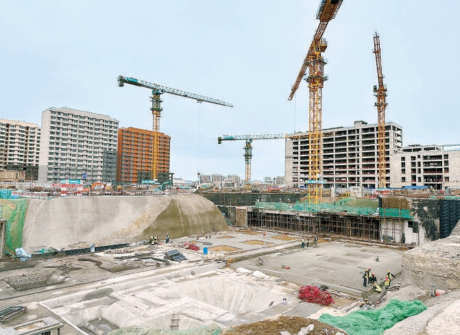 北京經(jīng)開區(qū)國際人才社區(qū)一期建設(shè)現(xiàn)場,部分建筑已沖出正負零。