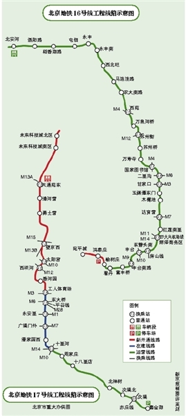 為17號線北段(未來科技城北區(qū)-工人體育場)、16號線剩余段(榆樹莊-宛平城)