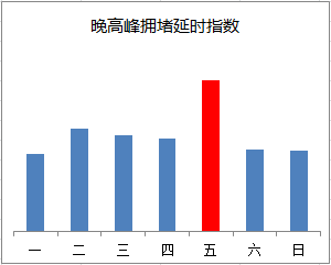 晚高峰期間,東、西、北二、三、四、五環(huán),東六環(huán)部分路段,以及萬泉河路至圓明園西路、通惠河北路、蓮石東路等城區(qū)道路出城方向車流集中,京藏高速、京承高速、京通快速、京港澳高速、機(jī)場高速等高速公路出京方向?qū)⒊霈F(xiàn)高峰車流,高峰時(shí)段為17:00—19:00,周五晚高峰提前且持續(xù)時(shí)間較長。