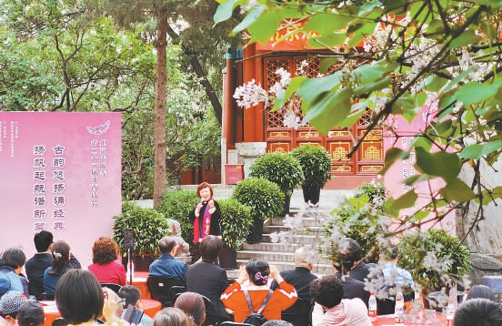在10日的丁香詩(shī)會(huì)上,朗誦藝術(shù)家為觀眾帶來(lái)詩(shī)詞朗誦表演。本報(bào)記者 方非攝
