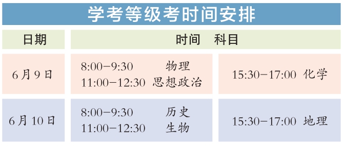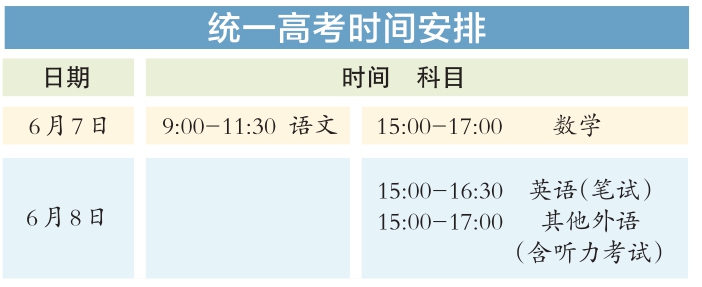 今年統(tǒng)一高考考試科目為語文、數(shù)學(xué)、外語3門,滿分均為150分。其中,英語聽說考試滿分50分,其他外語(非英語)聽力考試滿分30分,兩次聽說(聽力)考試的最高成績與其他部分試題成績一同組成外語科目成績計(jì)入高考總分。學(xué)考等級(jí)考科目為思想政治、歷史、地理、物理、化學(xué)、生物6門,由考生自主選擇3門參加考試,每科目滿分100分。參加本科招生錄取的考生總成績由3門統(tǒng)一高考成績和考生選考的3門學(xué)考等級(jí)考成績構(gòu)成,總成績滿分值為750分。