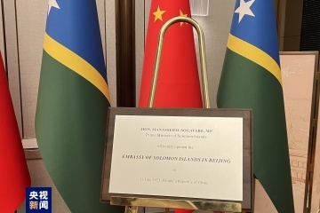 7月11日中午,所羅門群島駐華使館在北京舉行開館儀式。正在中國(guó)訪問的所羅門群島總理梅納西·索加瓦雷出席儀式。