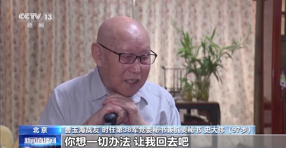 曹玉海戰(zhàn)友 時(shí)任第38軍黨委秘書兼機(jī)要秘書 史大偉:原來38軍的軍政委梁必業(yè)就說,別人的事都好辦,你這個(gè)事不好辦,因?yàn)槟阋呀?jīng)轉(zhuǎn)業(yè)了。曹玉海當(dāng)時(shí)非常懇切,老首長(zhǎng),我是在114師342團(tuán)長(zhǎng)大的,你想一切辦法,讓我回去吧。