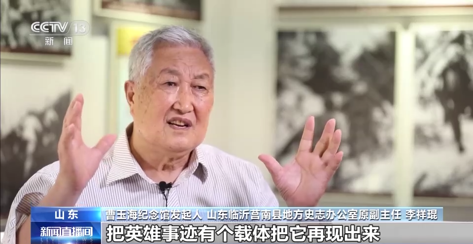 曹玉海紀(jì)念館發(fā)起人 山東臨沂莒南縣地方史志辦公室原副主任 李祥琨:建曹玉海紀(jì)念館就是把英雄事跡有個(gè)載體把它再現(xiàn)出來,教育和鼓舞、沂蒙人民不斷前進(jìn)、艱苦奮斗、奪取勝利。