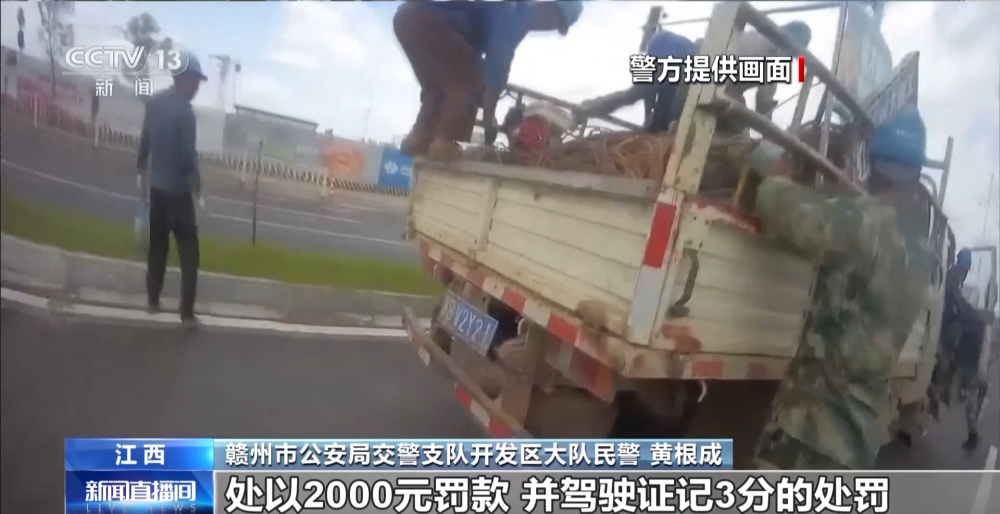 江西贛州市公安局交警支隊開發(fā)區(qū)大隊民警 黃根成:對貨車駕駛?cè)诉`反規(guī)定載客,超過十人的違法行為處以2000元罰款,駕駛證記3分的處罰。同時,我們對現(xiàn)場的施工人員進行了交通安全教育,強調(diào)他們這樣乘車的危害性,并對工地負(fù)責(zé)人下達(dá)了隱患整改通知書,并進行警示約談。