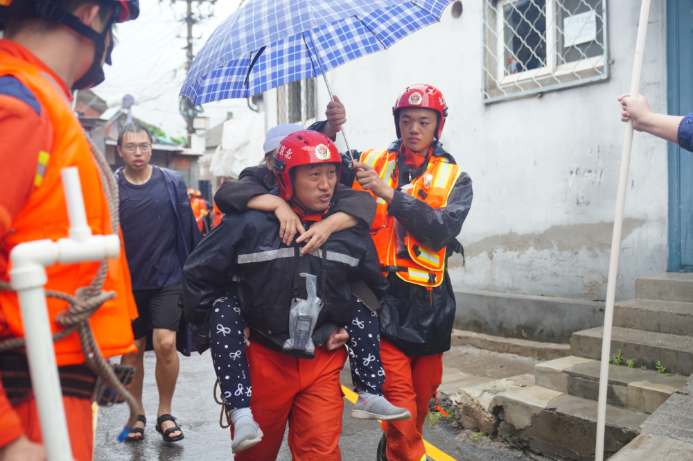7月31日13時(shí)36分,石景山區(qū)廣寧街道麻峪村內(nèi)道路積水最深處達(dá)1米,石景山區(qū)消防救援支隊(duì)接警后,出動(dòng)指戰(zhàn)員35人、消防車8輛、沖鋒舟6艘,對(duì)被困居民進(jìn)行疏散。