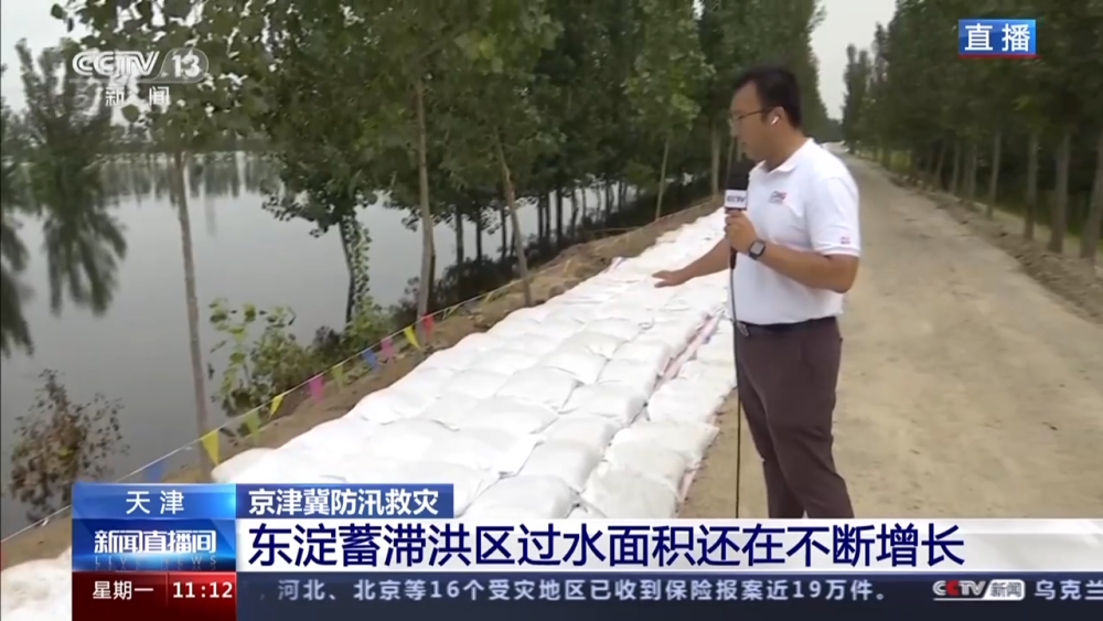 總臺央視記者 黃達:我現(xiàn)在所在的位置是靜海區(qū)臺頭鎮(zhèn)的圍埝上。截至今天9時,大清河水位相較昨天同一時間上漲0.4米。目前水位還在繼續(xù)上漲,距離圍埝的頂端還有1米左右的距離。