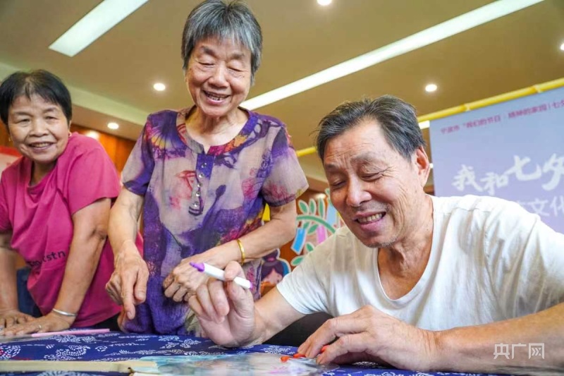 現(xiàn)場,老人們在海曙區(qū)橫街鎮(zhèn)成人文化技術(shù)學校教師的介紹下,了解七夕節(jié)的來歷和意義,并體驗“穿針乞巧”、團扇制作。此外,轄區(qū)青少年也一起來參加活動,在豐富暑期生活的同時,與爺爺奶奶們共同感悟傳統(tǒng)文化的魅力。