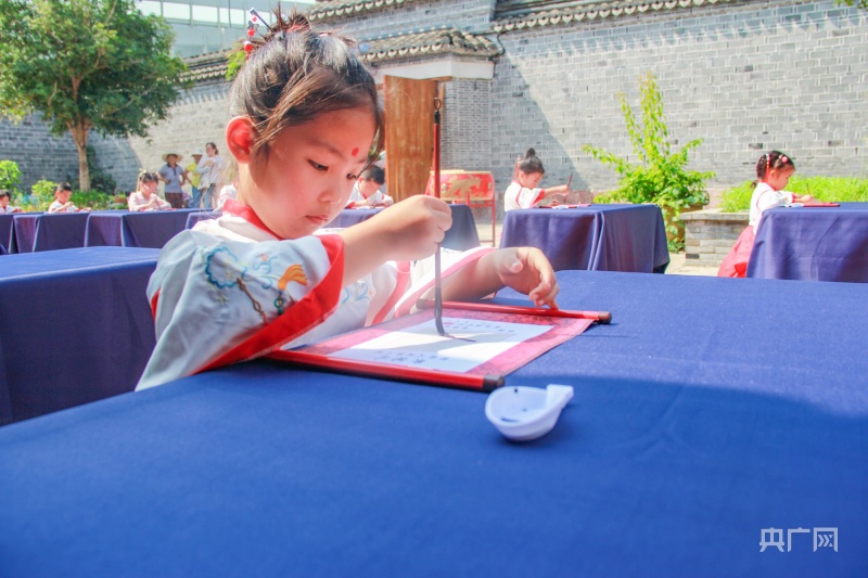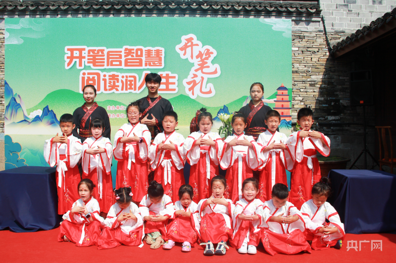 央廣網(wǎng)寧波8月22日消息(記者 張雯雯 通訊員 方舟 安雨晨)樹影婆娑,古韻悠揚,鼓聲清越,翰墨飄香。8月22日,在新學年來臨之際,寧波市江北區(qū)莊橋街道馬徑村文化禮堂舉行了一場別開生面的“開筆啟智慧 閱讀潤人生”開筆禮。活動在茂昌房舉行,20多名即將上小學的小朋友身著漢服,在開筆儀式中感受中國傳統(tǒng)文化的魅力。