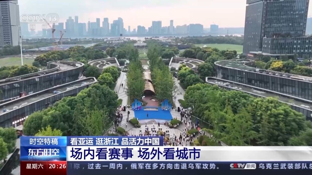 總臺記者 孫銳:這里是杭州市蕭山區(qū)的錢江世紀(jì)公園,每到傍晚這里就會格外熱鬧,大家圍著亞運觀賽空間看比賽,或到附近的亞洲花卉主題展園賞花;又或者到錢塘江邊的綠道上吹吹江風(fēng),感受秋意。