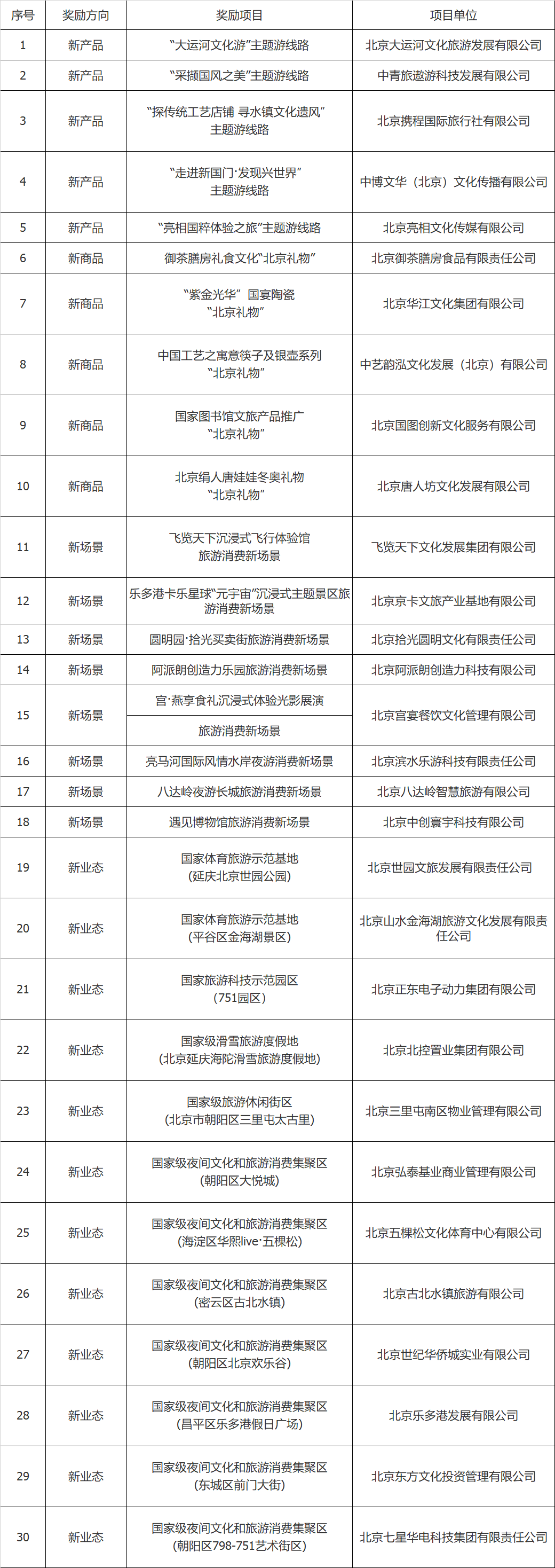 央廣網(wǎng)北京11月7日消息(記者 秦立玲)據(jù)北京市文化和旅游局消息,按照《北京市擴大文化和旅游新消費獎勵辦法》(京文旅發(fā)〔2022〕99號)有關(guān)要求,經(jīng)征集、專家評審及社會公示等程序,北京市文化和旅游局已確定“大運河文化游”主題游線路等30個新產(chǎn)品、新商品、新場景、新業(yè)態(tài)入選2022年北京市擴大文化和旅游新消費獎勵項目名單。