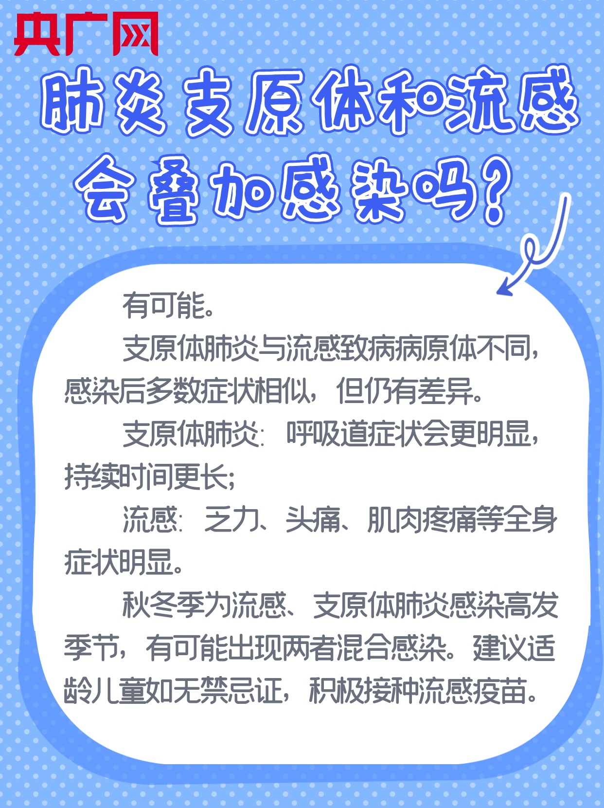 央廣網(wǎng)北京11月21日消息(記者 雷妍 實(shí)習(xí)記者 鄭潔怡)冬季是呼吸道疾病的多發(fā)季節(jié),多種呼吸道疾病交織疊加,與此相關(guān)的話題引起廣泛討論。孩子發(fā)燒需要去醫(yī)院?jiǎn)幔咳绾闻袛嗍悄姆N病原體的感染?肺炎支原體和流感會(huì)疊加感染嗎?央廣網(wǎng)帶您看圖了解。