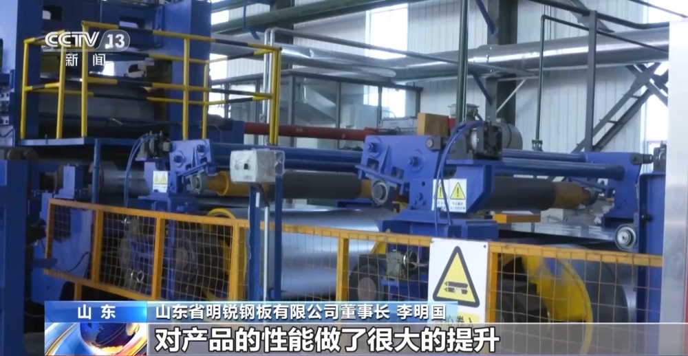山東省明銳鋼板有限公司董事長(zhǎng) 李明國(guó):我們這個(gè)鍍鋁鋅產(chǎn)品,對(duì)產(chǎn)品的性能做了很大的提升,主要出口越南、泰國(guó)、巴西、土耳其等地方。像黃金色的,或者雙面綠、單面綠顏色,主要是針對(duì)出口,都是定制產(chǎn)品。