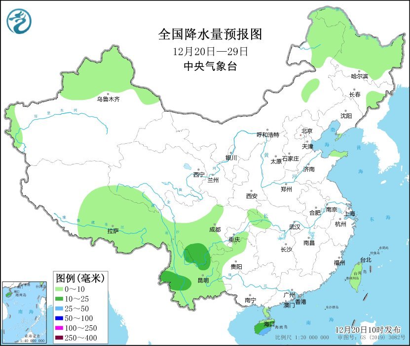 未來10天(12月20-29日),全國大部地區(qū)降水稀少,新疆北部、東北地區(qū)北部及西南地區(qū)東部等地累計(jì)降水量有2~15毫米。