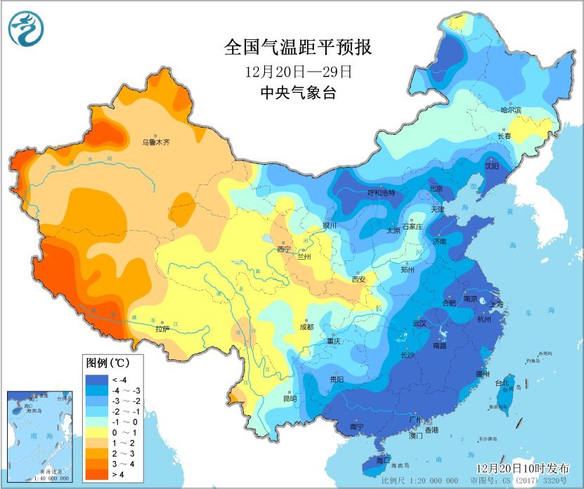 過去10天,受寒潮影響,長江及其以北地區(qū)氣溫由前期顯著偏高轉(zhuǎn)為偏低1~3℃,其中新疆北部、內(nèi)蒙古東部、東北地區(qū)等地偏低5℃以上;西南地區(qū)、江南南部和華南氣溫偏高1~2℃。