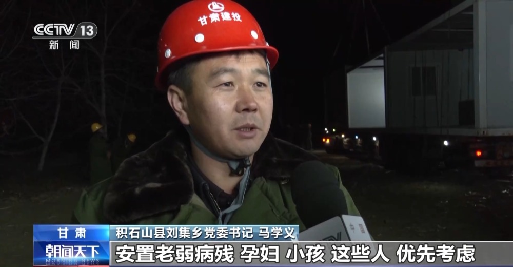 總臺央視記者 孫淵:在積石山縣地震災(zāi)區(qū)的第一批活動板房施工現(xiàn)場,凌晨溫度已經(jīng)達到零下14、15℃,但是這里的施工工人正在熱火朝天地忙碌著。