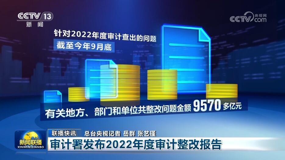 12月26日,審計署發(fā)布2022年度審計整改報告,報告顯示,針對2022年度審計查出的問題,截至今年9月底,有關(guān)地方、部門和單位共整改問題金額9570多億元,制定完善規(guī)章制度1600多項(xiàng),追責(zé)問責(zé)2540多人,解決了一些不利于改革發(fā)展和經(jīng)濟(jì)社會穩(wěn)定的體制機(jī)制問題。