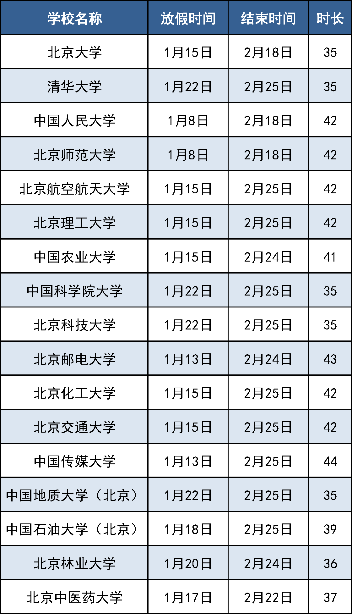 央廣網北京1月3日消息(記者 馮儀) 寒假在即,北京各大高校紛紛公布2024年寒假放假安排。北京大學、清華大學、中國人民大學等近40所高校公布的放假安排中,最長的假期達48天。