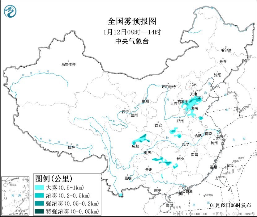 央視網(wǎng)消息:中央氣象臺(tái)1月12日06時(shí)繼續(xù)發(fā)布大霧黃色預(yù)警:預(yù)計(jì),1月12日的早晨至上午時(shí)段,河北南部、山東北部和西部、湖北北部、四川盆地北部、湖南西部、貴州東部等地的部分地區(qū)有大霧天氣,其中山東西北部、四川盆地北部、湖北北部、湖南西部、貴州東北部等地的部分地區(qū)有能見度不足500米的濃霧,局地有能見度不足200米的強(qiáng)濃霧。